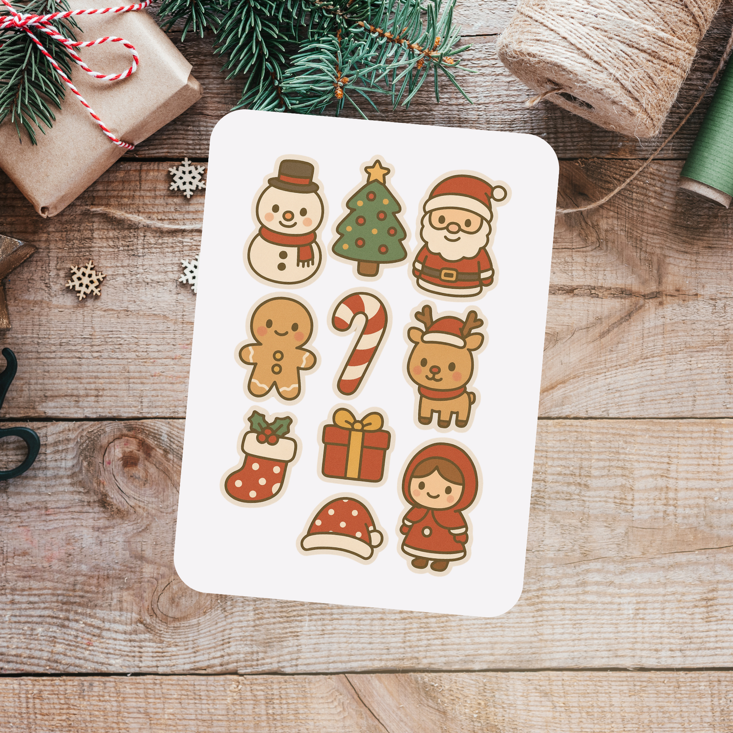 Celebrate the holidays with cute Christmas stickers — snowmen, reindeer, cocoa mugs,...